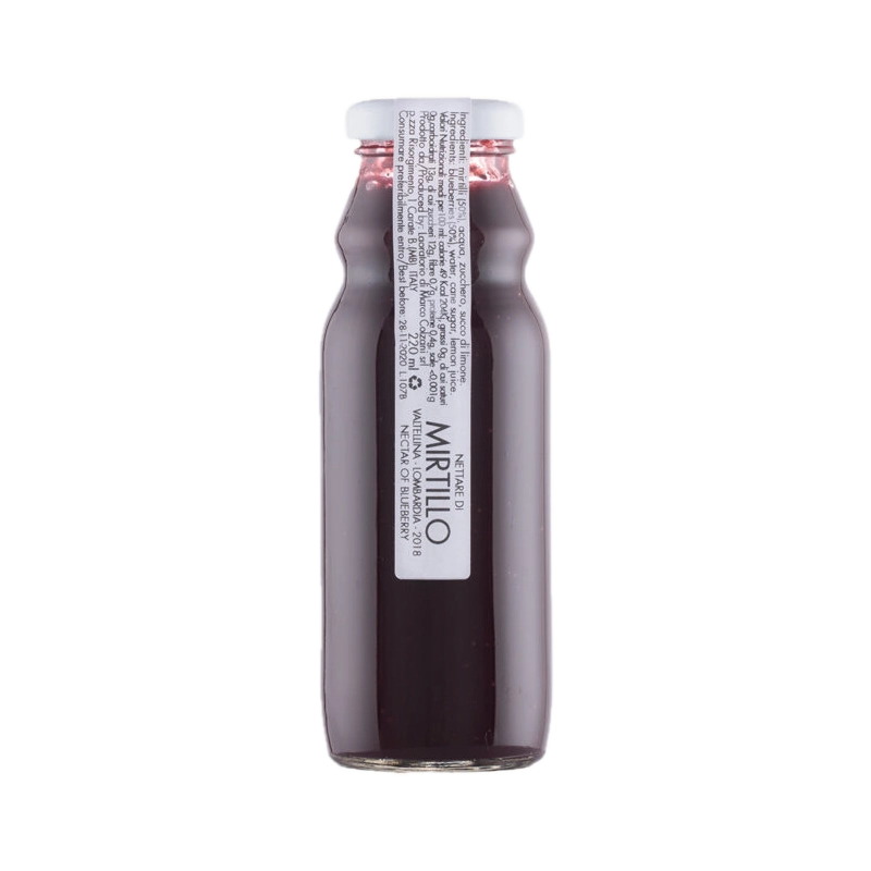 Mirtillo 50%, acqua, zucchero, succo di limone.