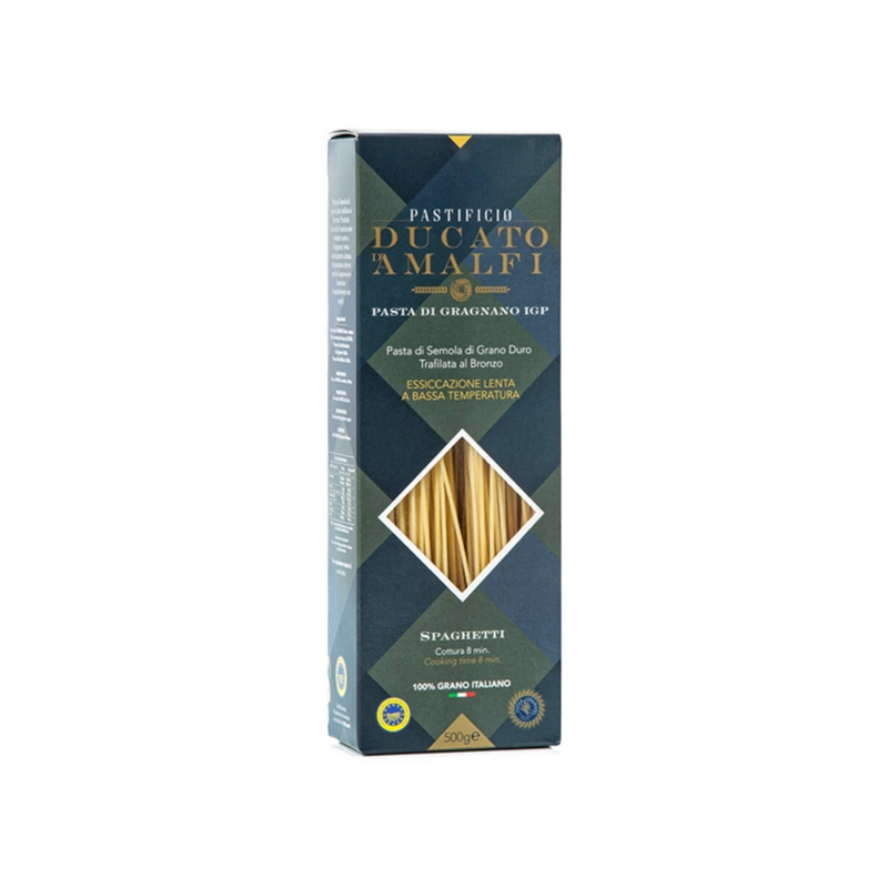 Pasta di semola di grano duro di alta qualità 100% italiana trafilata al bronzo, prodotta secondo il tradizionale metodo usato a Gragnano: lenta essiccazione a bassa temperatura, che regala alla pasta un gusto unico ed esalta ogni condimento